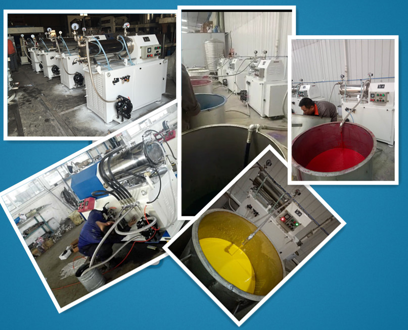 臥式密閉砂磨機(jī)是一種采用濕法研磨分散、筒體水平安裝、連續(xù)密閉生產(chǎn)的化工設(shè)備;型氣動雙隔膜泵(或齒輪泵)將經(jīng)過預(yù)分散、潤濕處理的固液相混合物料輸入筒體內(nèi),物料和筒體內(nèi)的研磨介質(zhì)一起被高速旋轉(zhuǎn)的分散器組所攪動,使物料中的固體顆粒和研磨介質(zhì)間產(chǎn)生強(qiáng)烈的碰撞、剪切,在短時(shí)間內(nèi)達(dá)到物料顆粒的磨細(xì)和分散聚集體的目的。是生產(chǎn)油漆、油墨、染料等產(chǎn)品的常用設(shè)備